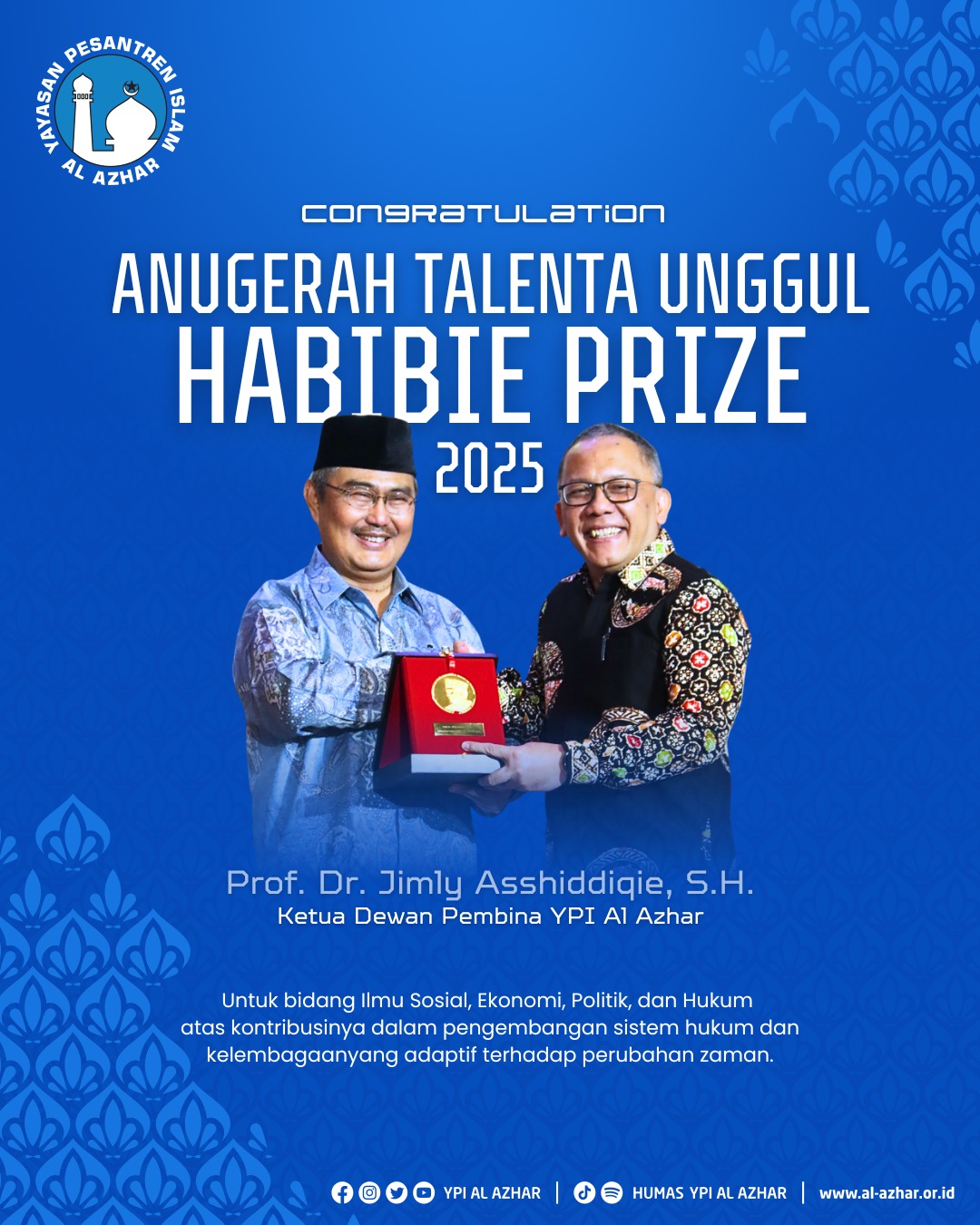 “YPI Al Azhar turut membangun pendidikan di Indonesia, mencetak generasi yang cerdas, memiliki emosional yang baik dan spiritualitas yang tinggi”